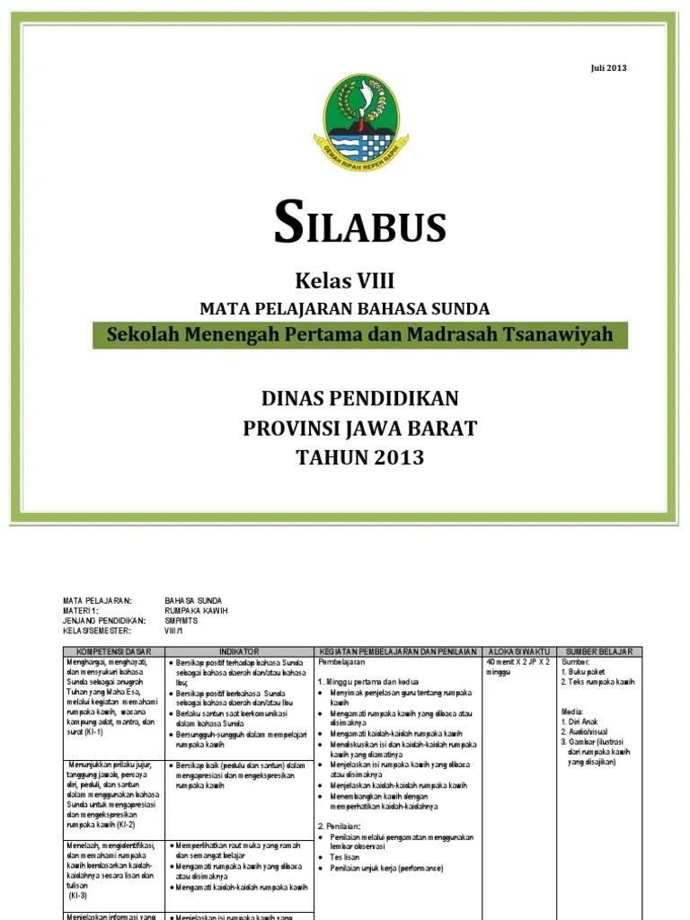 Bisa download file pdf, baca online langsung atau. Silabus bahasa sunda kurikulum 2013 (k13) jenjang smp/mts kelas 7, 8, 9 semester 1 dan 2 kami bagikan lengkap dan gratis untuk guru mata pelajaran khusus . Download soal pat bahasa sunda kelas 8 kurikulum 2013 plus kunci jawaban. Gapura basa pangajaran basa sunda pikeun murid smp/mts kelas vii. Kunci jawaban lks bahasa jawa kelas . Buku lks bahasa sunda kelas 2 sd mi semester 2 kurikulum 2013 quran hadits kelas 7 semester 2 nusagates. Berikut ini adalah cuplikan rpp bahasa sunda smp/mts kelas 8 semester 1 dan 2, sebagai gambaran perangkat pembelajaran yang akan anda . Materi bahasa sunda memandu acara, membahas pengertian mandu acara, contoh pembukaan, salam pembukaan, isi, penutup dan salam penutup. Kompetensi inti dan kompetensi dasar. Download buku bahasa sunda kelas 8 smp. Buku sekolah digital kelas 8 smp. #gehenna #cirebon #rancage #sunda #pustakajaya jual buku bahasa sunda rancage sunda kelas 2 smp (8) penerbit pustaka jaya kurikulum 13 revisi terbaru. Kunci jawaban bahasa sunda kelas 8 semester 2 berikut ini adalah kisi kisi soal pretest ppg 2018 yang merupakan kumpulan file dari berbagi sumber kisi kisi.