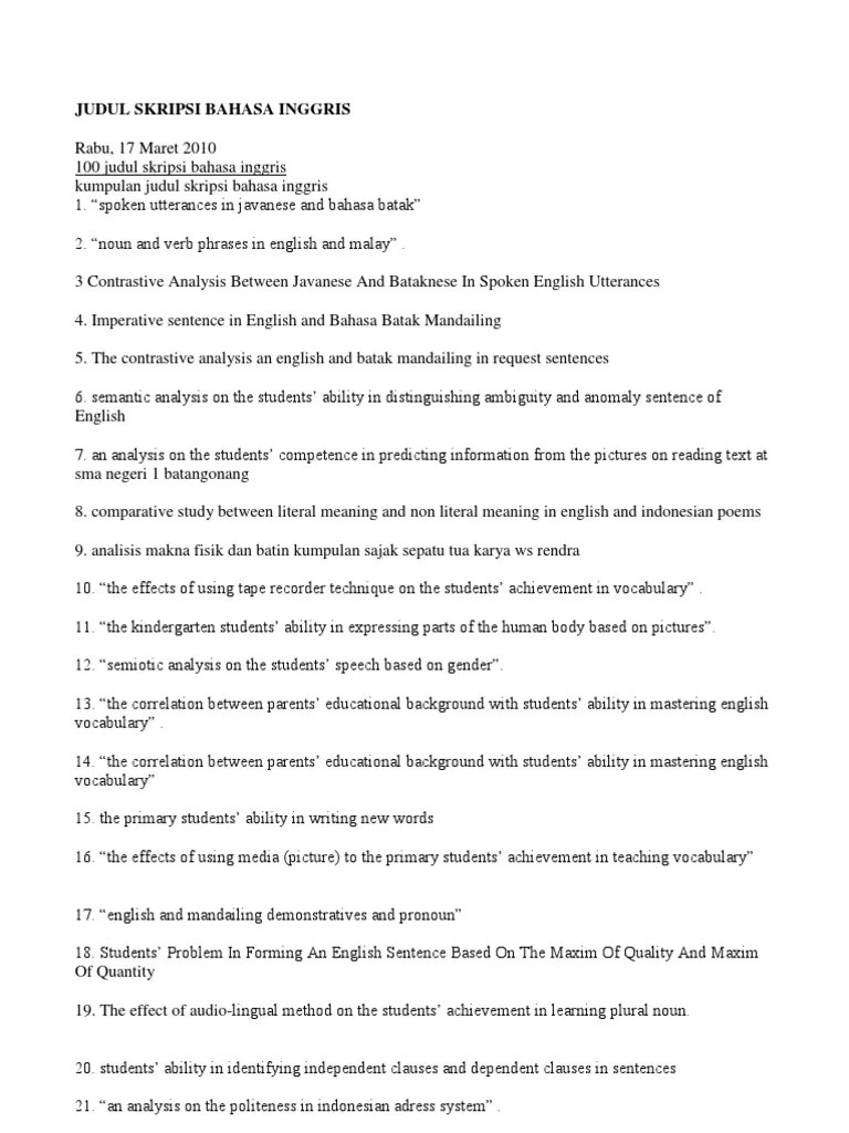 Contoh proposal penelitian etnografi pdf download. Kumpulan judul skripsi bahasa inggris tentang speaking. Perspektif pendidikan bahasa inggris di indonesia dalam konteks persaingan global. Ketua program studi pendidikan bahasa inggris, fakultas kegu.ruan dan ihm, . Penelitian yang saya lakukan dengan judul di atas belum pernah diteliti di.